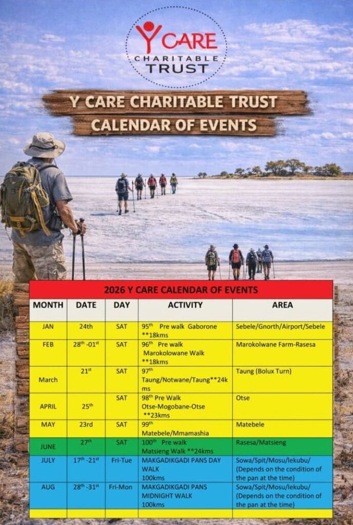 Join the Y Care community as we walk across the breathtaking landscapes of Botswana. Whether you are a beginner looking for a 15km pre-walk or an adventurer ready for the 100km Makgadikgadi Challenge, your participation is the driving force behind our mission. Every kilometer you cover directly funds critical health and education projects that provide a lifeline to our local communities.